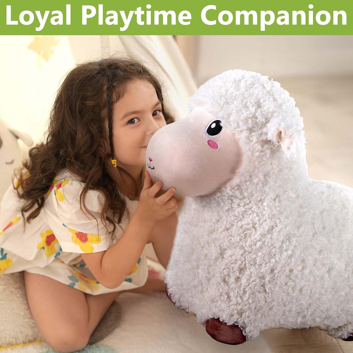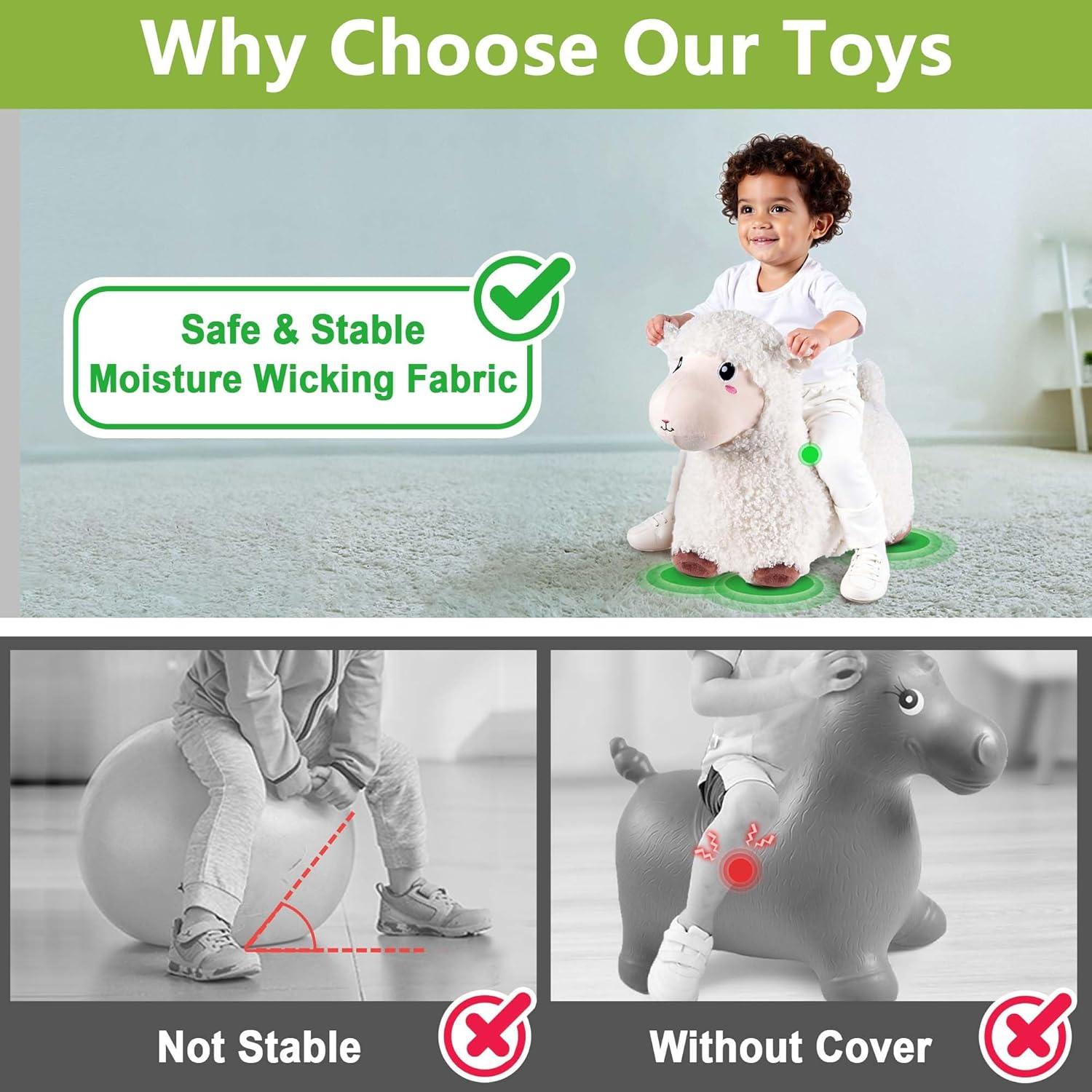【Meet Your New Best Friend!】 Kids will adore this charming bouncy toy, featuring a super-soft fabric cover that mimics a real sheep's woolly coat!
