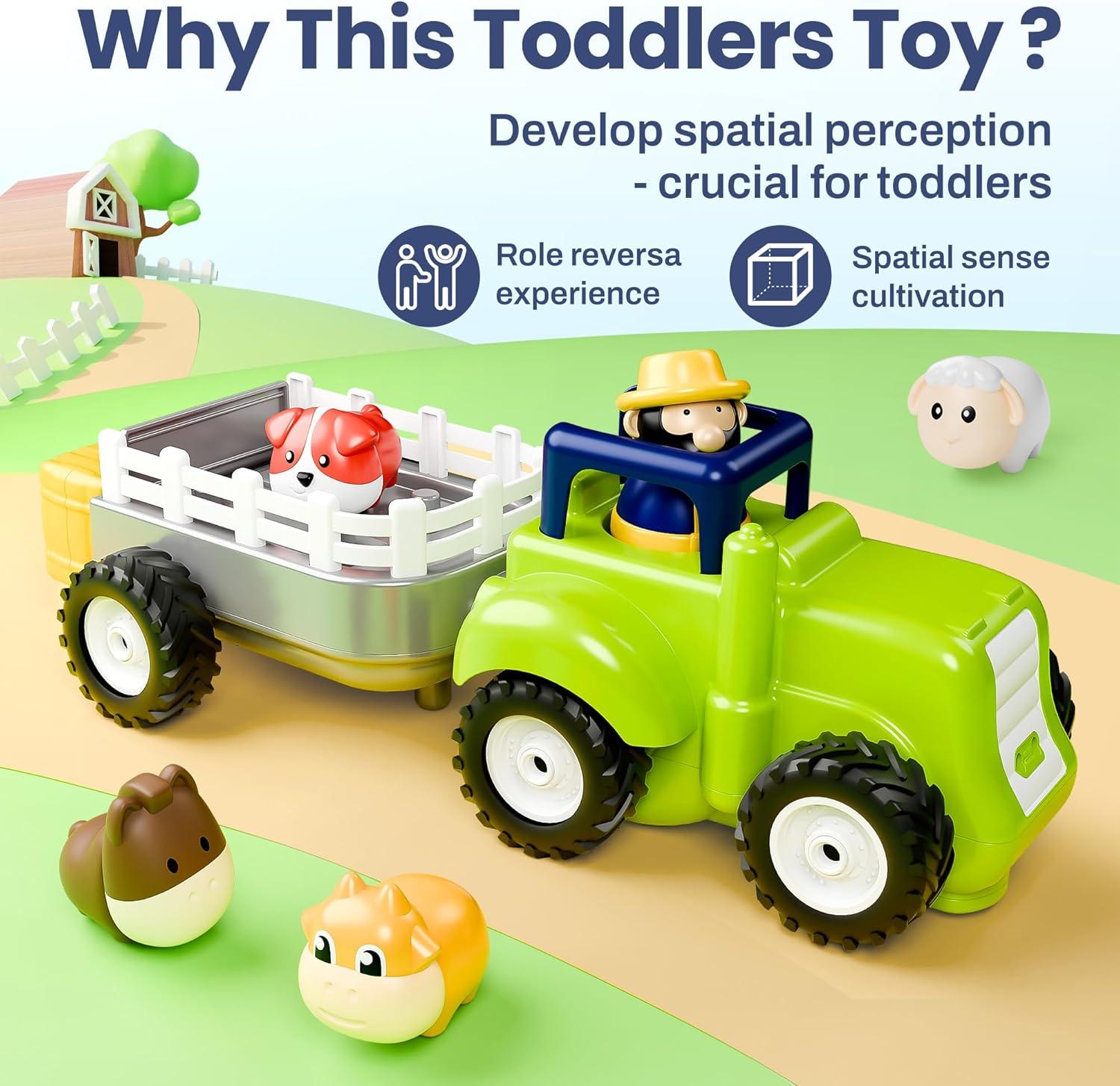 【Encourages Social Play】Pressing the farmer figure triggers music, encouraging babies to dance along, and also allows for one-touch start-up of the vehicle, which is equipped with obstacle avoidance capabilities.