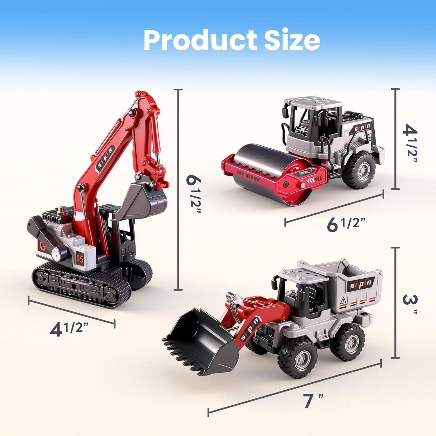FRICTION INDOOR ENGINEERING PLAY: Kids build fine motor skills by pushing these inertia-driven vehicles across tables or floors. Ideal for siblings or friends to share, race, and create their own construction adventures