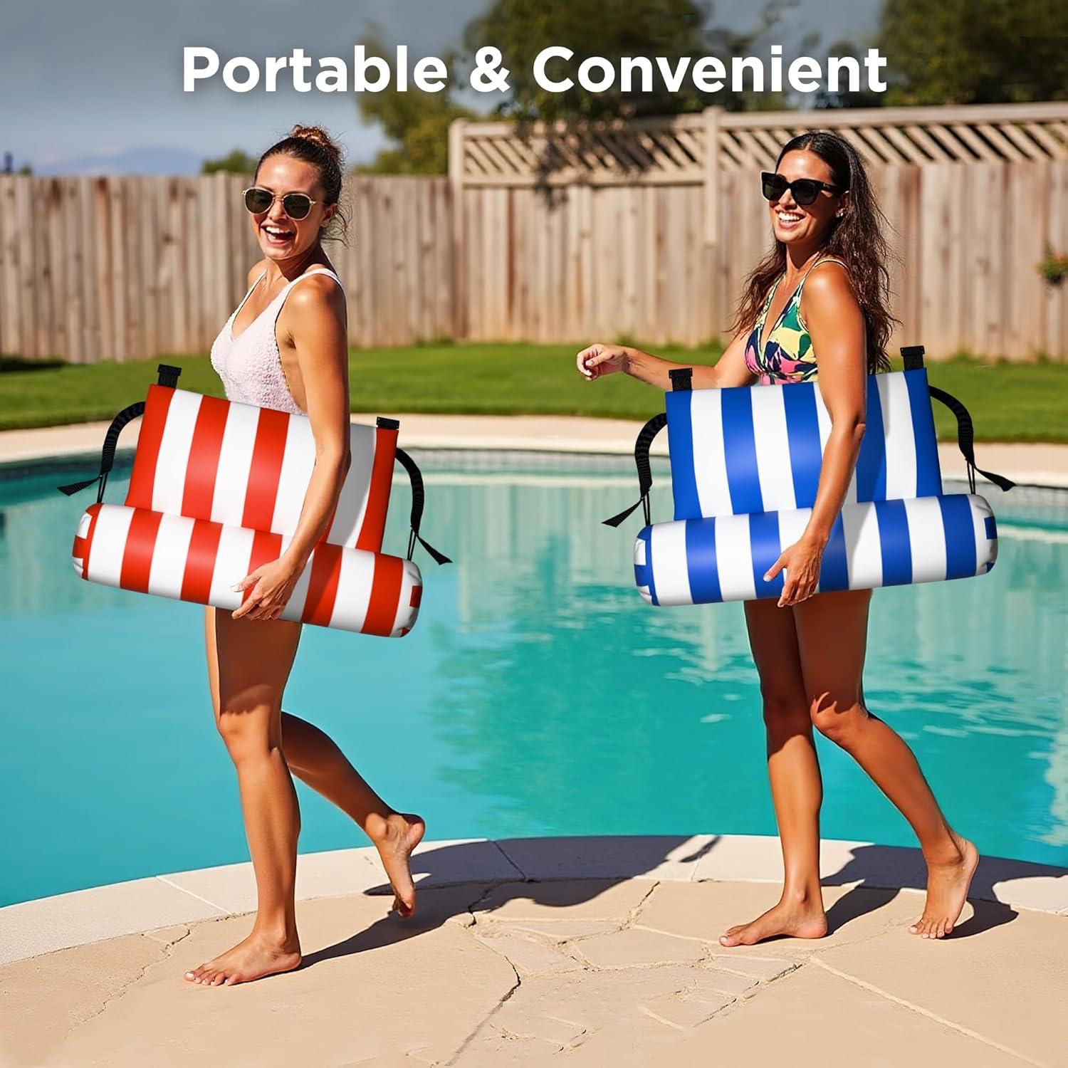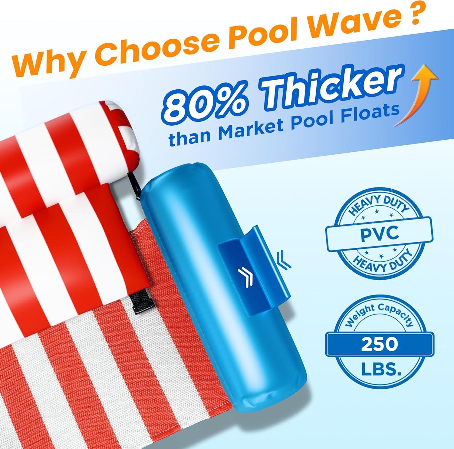 Pool Wave Pool Floats Chairs Adult, 2 Packs Heavy Duty Inflatable Swimming Pool Lounges, Fabric Floating Hammock, Kids Blow Up Pool Noodles, Lake Raft Floaties, Fun Summer Outdoor Water Party Game