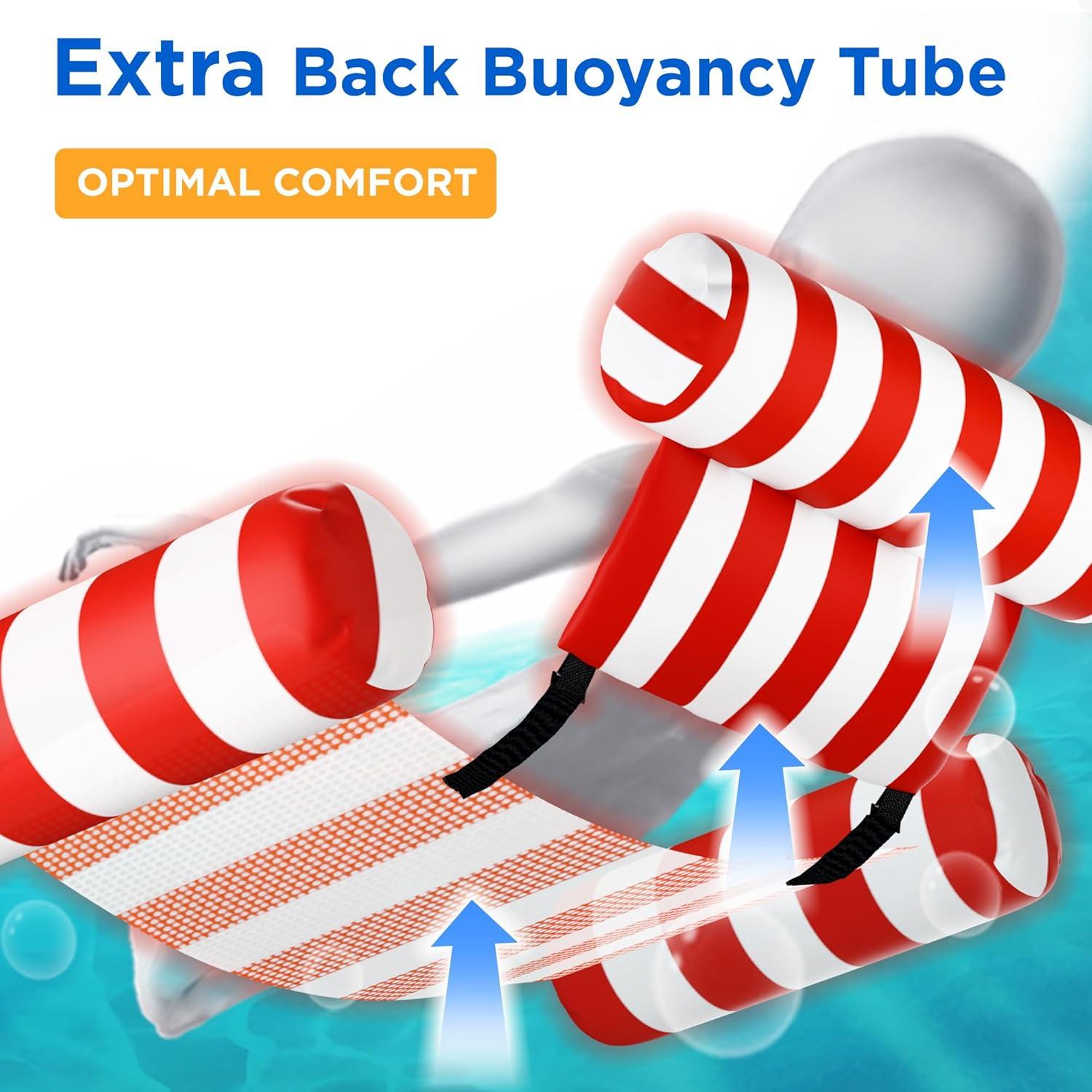 【Maximum Comfort & Support】The ergonomic headrest and cushioned backrest cradle your neck and spine, while 4 ultra-buoyant air tubes distribute weight evenly. Perfect for extended lounging—effortlessly supports up to 250 lbs.