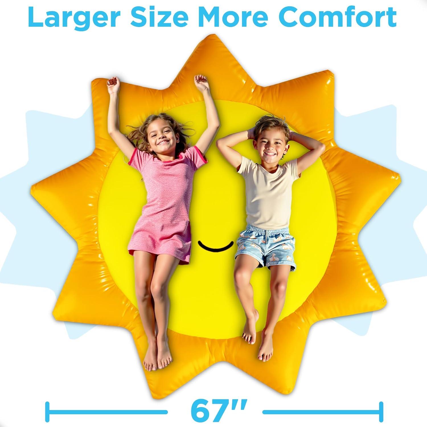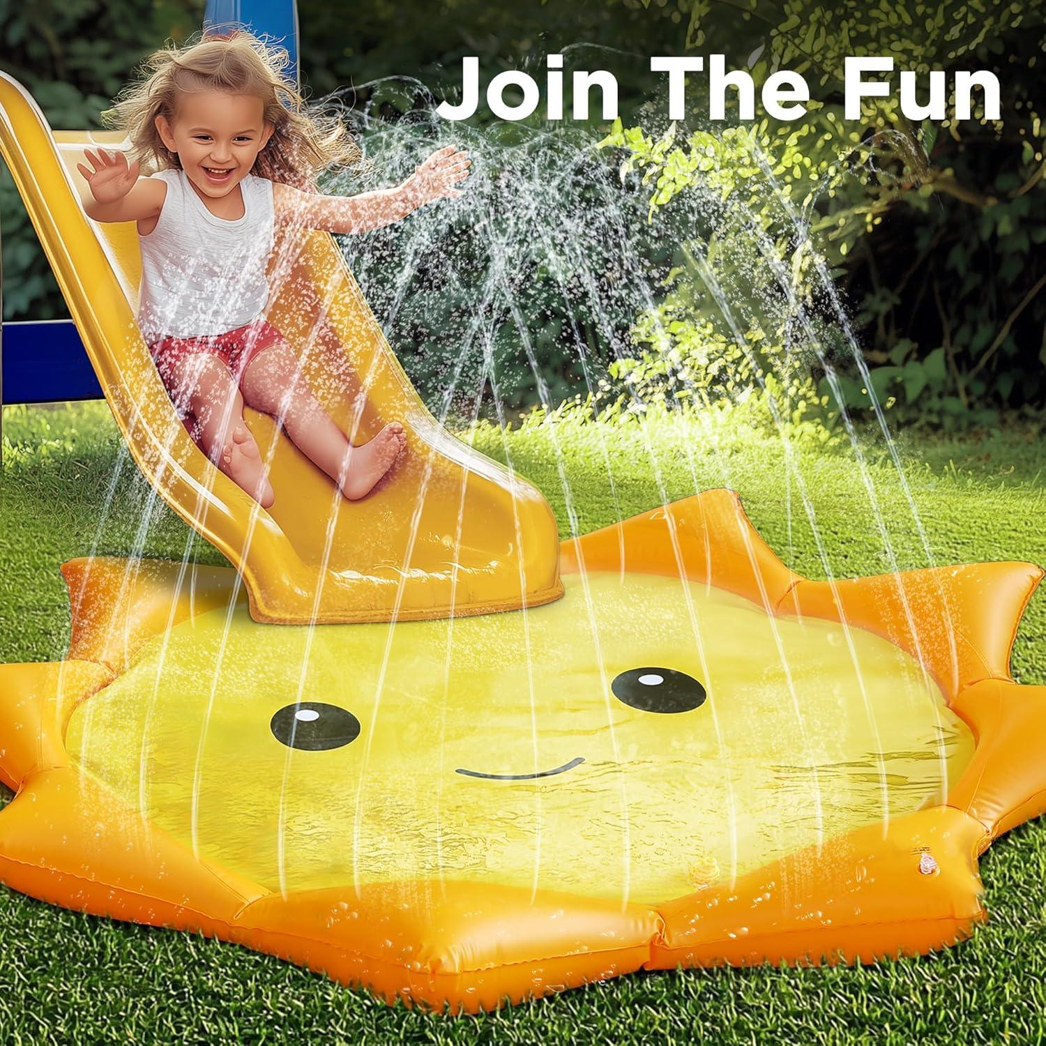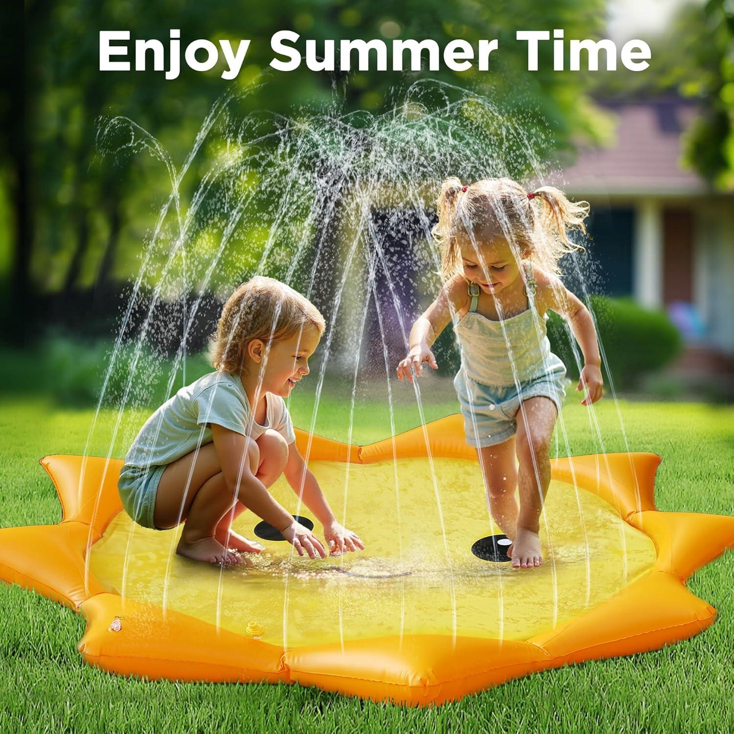【Safe PVC Materials】– The inflatable sunshine splash pad is made of qualified PVC plastic, which is long lasting and not easy to tear. It's a safe summer toy that offers endless fun for toddlers aged 12 months and above.