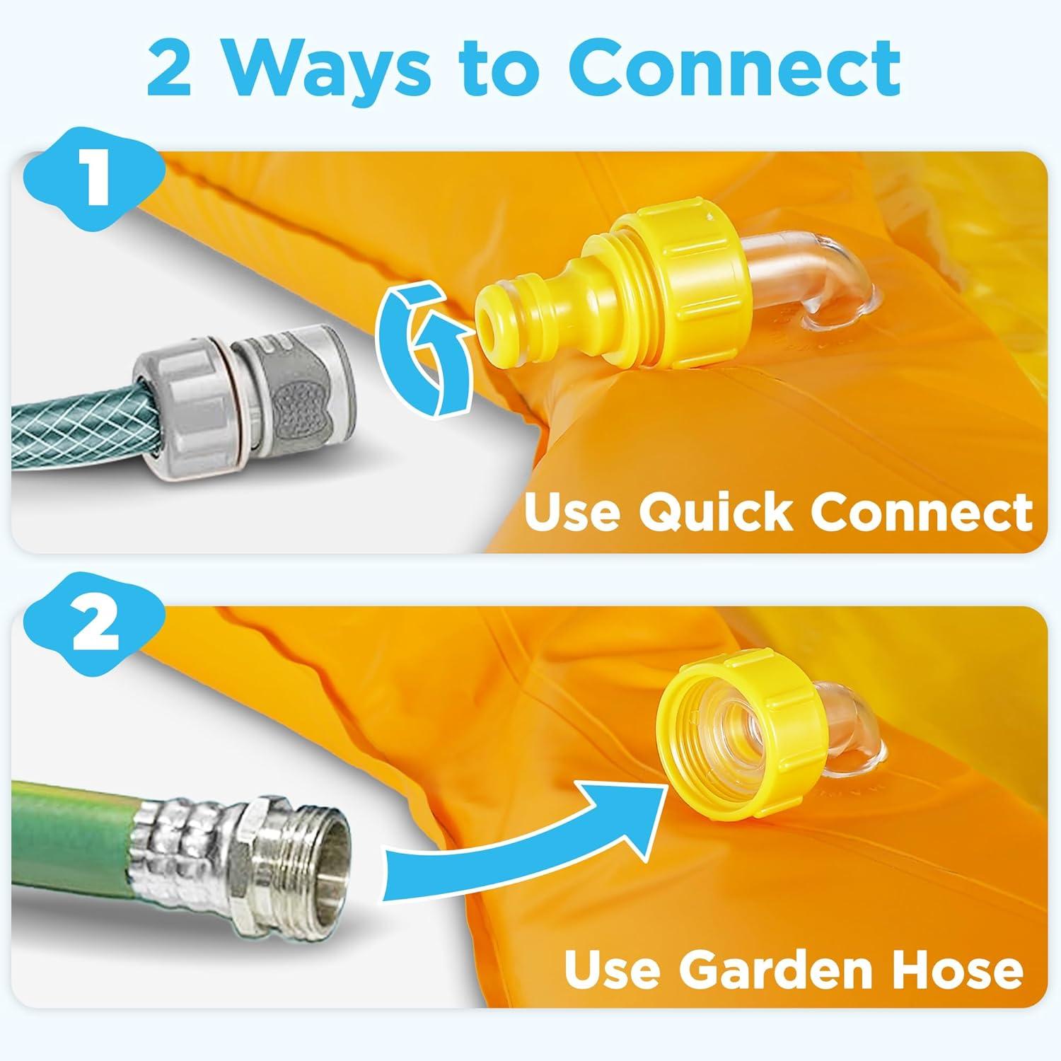 【Foldable and Portable】– With an upgraded hose connection, the splash pad is easy to inflate and fill with water, making it convenient for parents to provide a fun water play experience for their kids without any hassle.